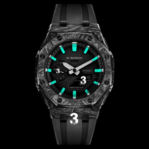 Carbon Fiber Mod Luminous Dial (Black Marker) - White Rubber
